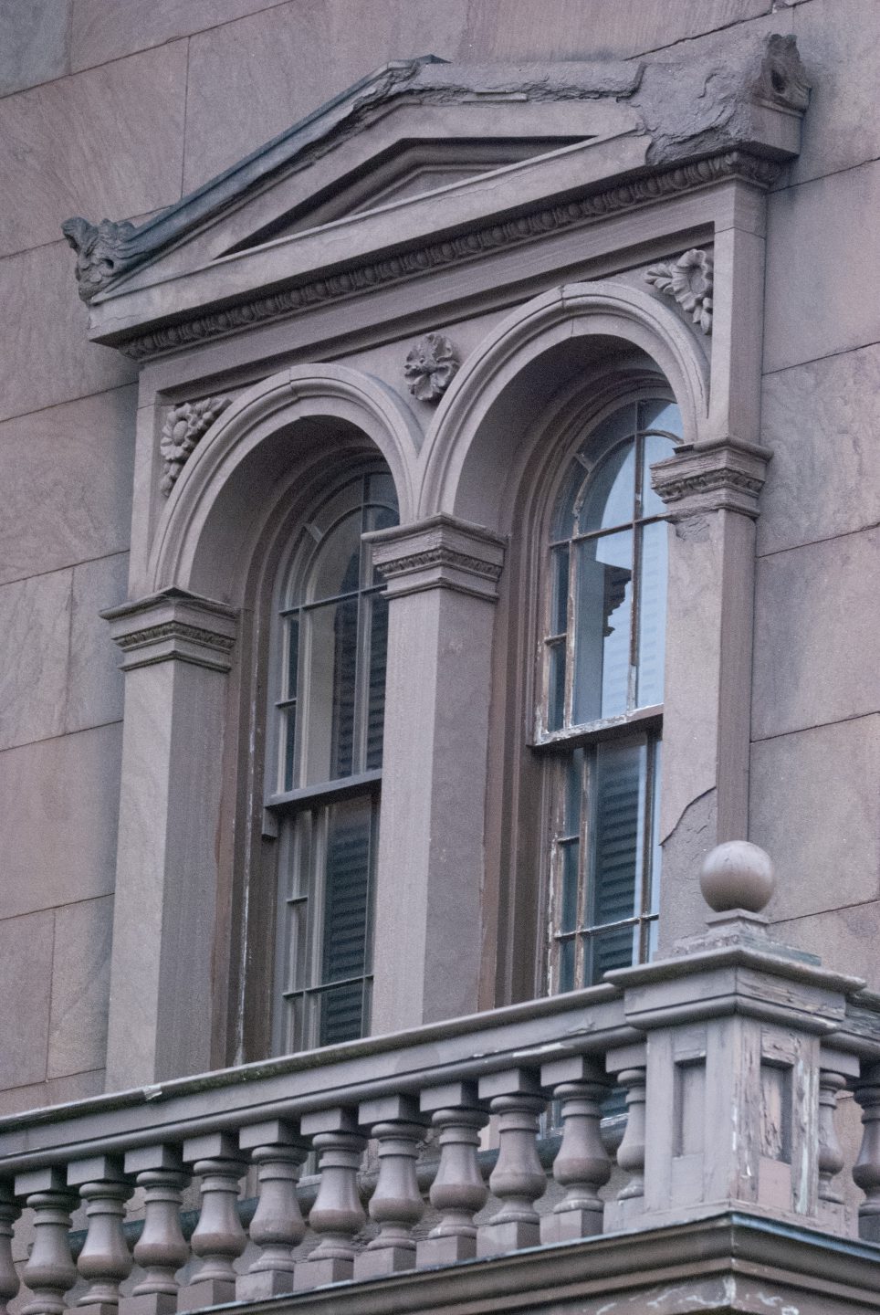 A massive, sweeping balustrade and piers are recreated from newly quarried brownstone and the original ornate brownstone finials are replicated in new stone.