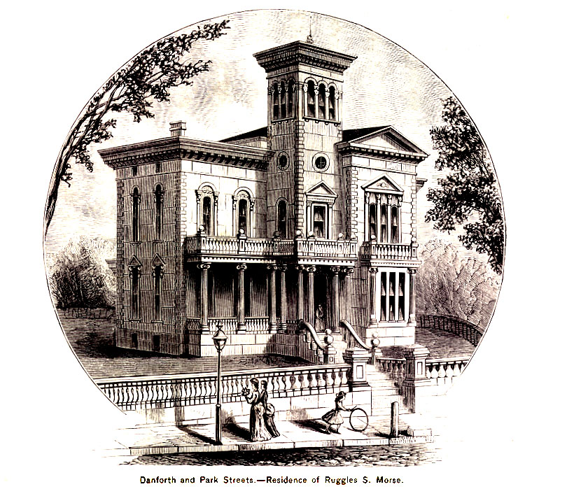 Olive Morse’s brother William Merrill and his wife Abigail occupy the newly completed mansion on Danforth Street.