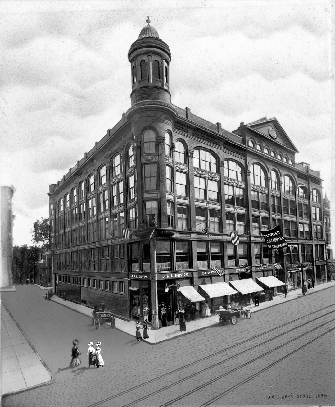 In 1935, the Libby Department Store closes. Though the department store building remains standing, it has since been subdivided and its exterior covered in mastic.