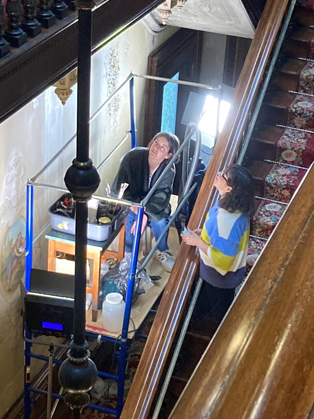 Since 2012, major interior restorations of the Turkish Smoking Room, Vestibule, Pompeiian Bathroom Suite, Reception Suite, and Parlor have been completed. In 2022, we began our most ambitious paint conservation project – a two-year effort to clean and restore the soaring central Stair Hall.